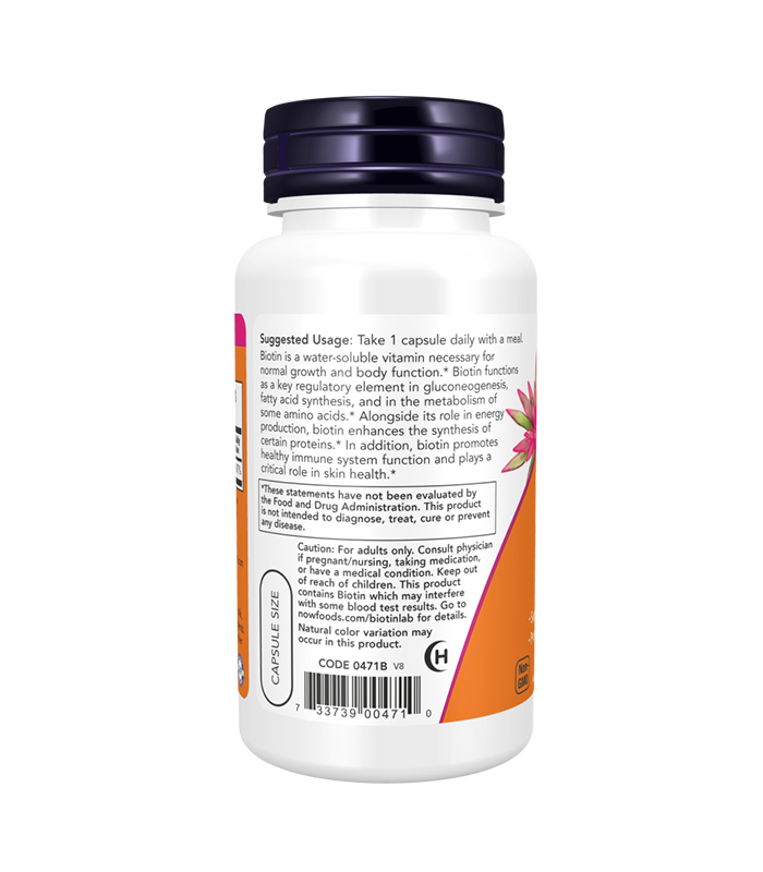NOW Biotin 5000 mcg – Shtesë ushqimore për flokë, thonj dhe lëkurë të shëndetshme